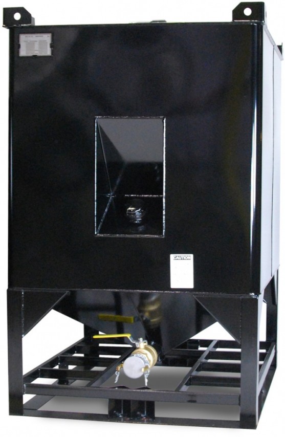 GT Series - Carbon Steel Construction For Lubricants / Oilfield Industry, Mining Industry, Class III Flammables, UN31A Transportable IBC, IMDG IBC, Viscous Lube Oil & Grease, 37 Degree Hopper Bottom To 3” Drain, Side Pocket For Grease Pump.